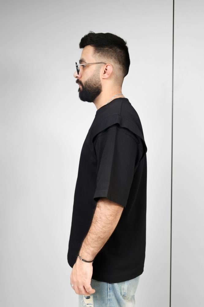 هذا مو أي تيشيرت – هذا تصميم بقصّة مميّزة تجذب الانتباه من أول نظرة. كتف مفصول بتفصيل هندسي أنيق